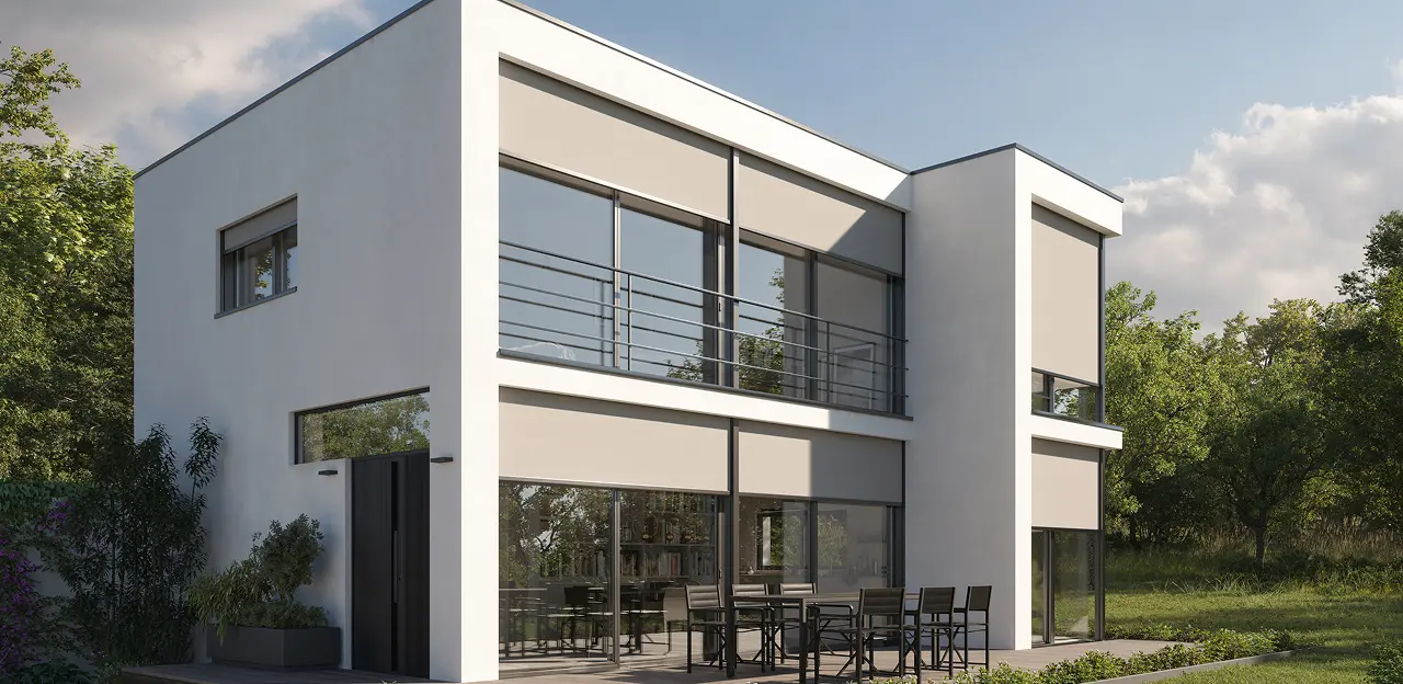 Это защита вашего дома от солнечного света, которая устанавливается на фасаде и остается почти незаметной. Солнцезащитные системы состоят из тканевого полотна, компактного короба (в который сворачивается полотно) и небольших направляющих (с застежкой-молнией).