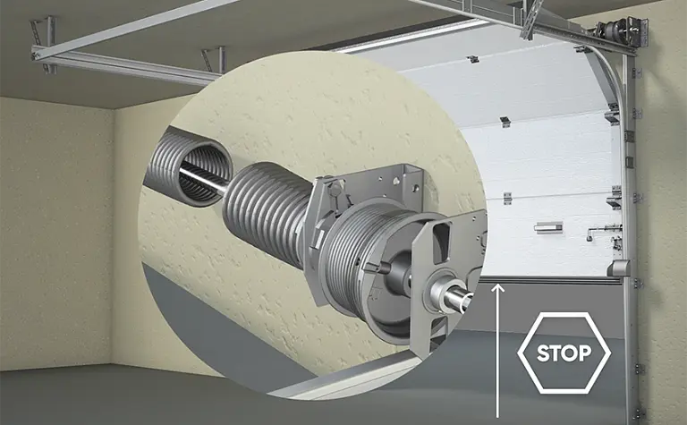 В конструкции ворот установлена храповая муфта. При поломке пружины она не позволит полотну упасть.