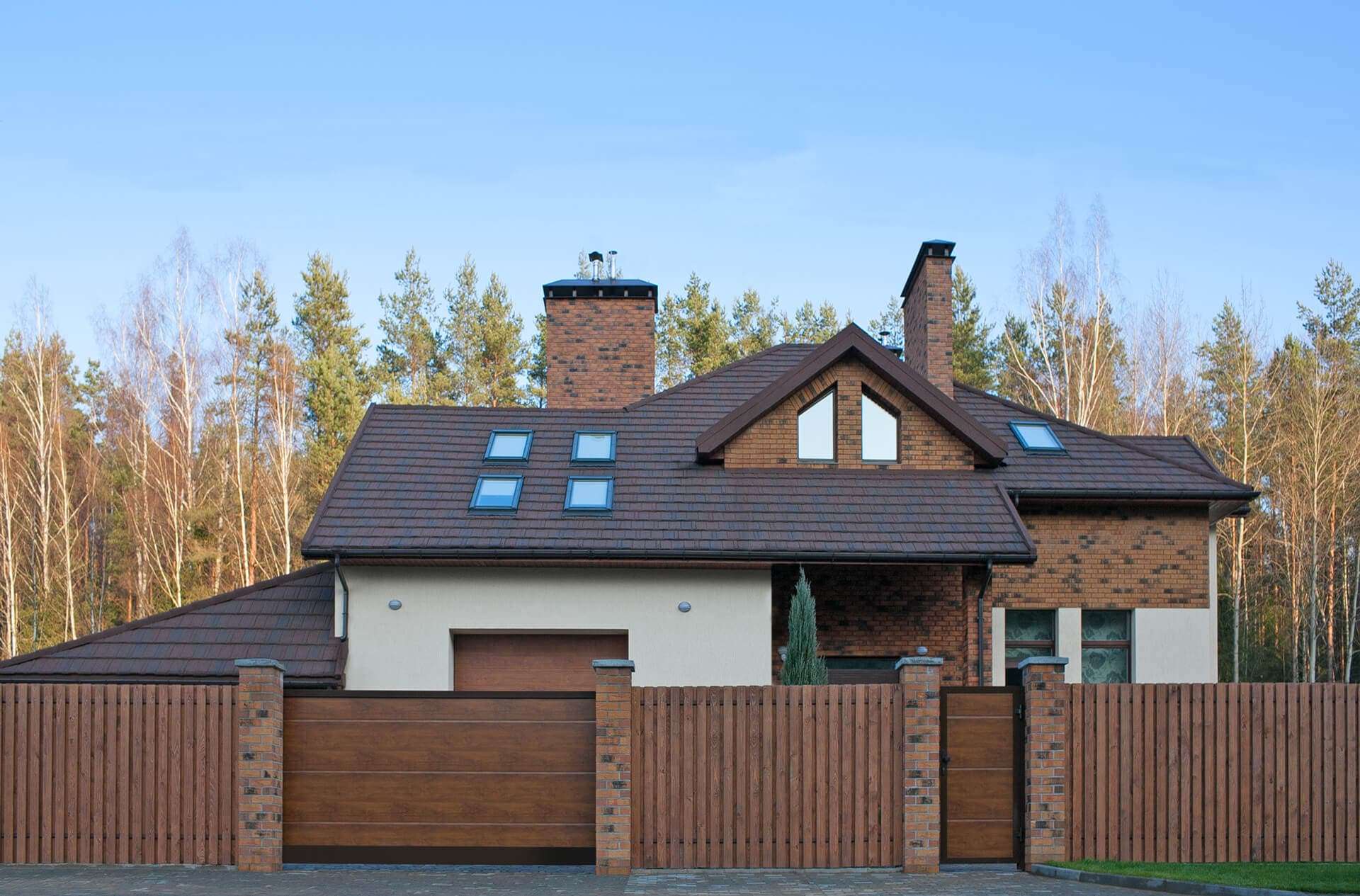 Широкая цветовая гамма профилей роликовой прокатки обеспечивает разнообразные варианты сочетания ворот с фасадом здания. В зависимости от цвета въездные ворота могут сливаться с фасадом или служить ярким элементом, подчеркивающим индивидуальный стиль дома.